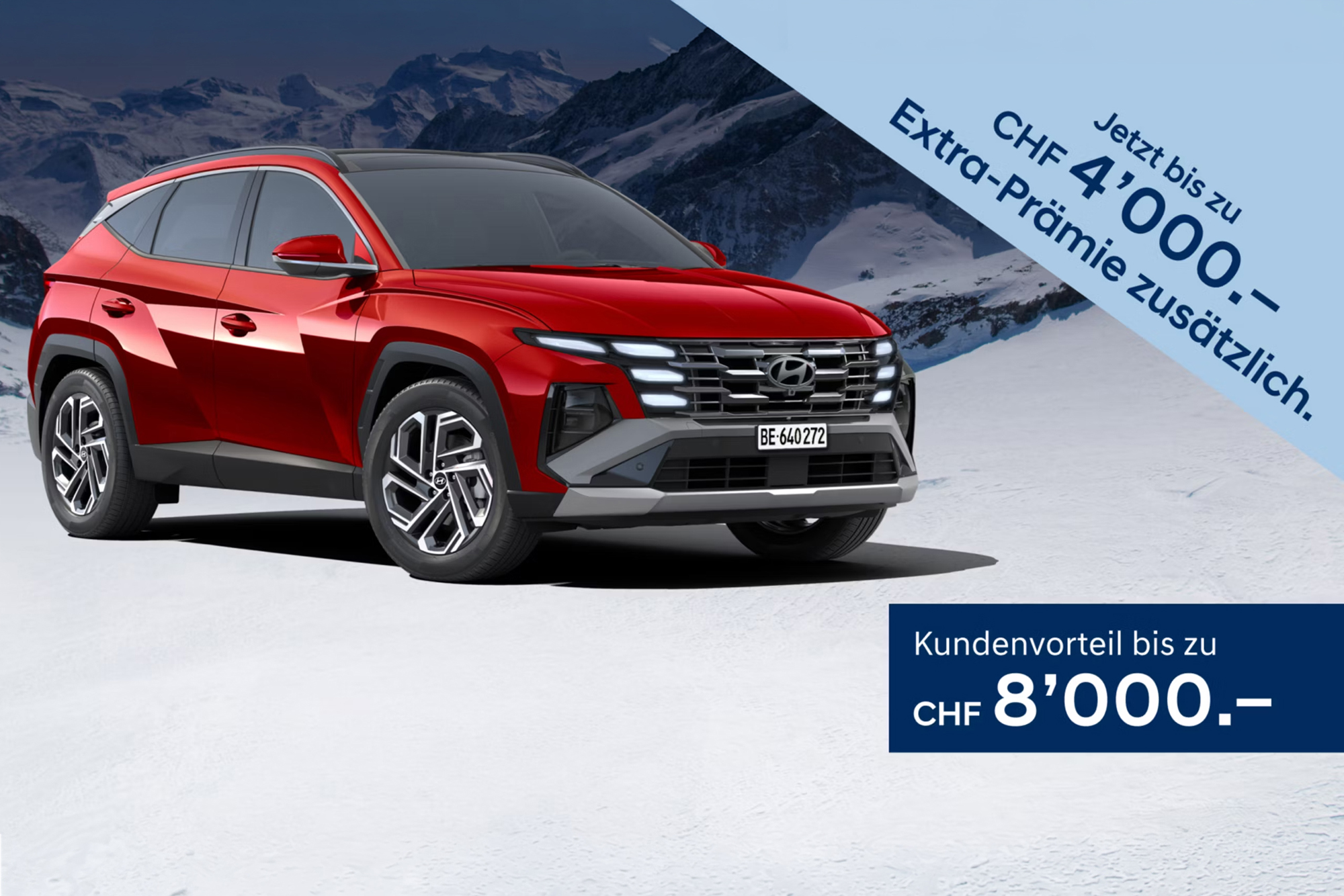 Entdecken Sie jetzt die Hyundai Swiss Edition mit exklusiven Features und profitieren Sie von bis zu CHF 8’000.- Kundenvorteil und für kurze Zeit von bis zu CHF 4’000.- Extra-Prämie zusätzlich.